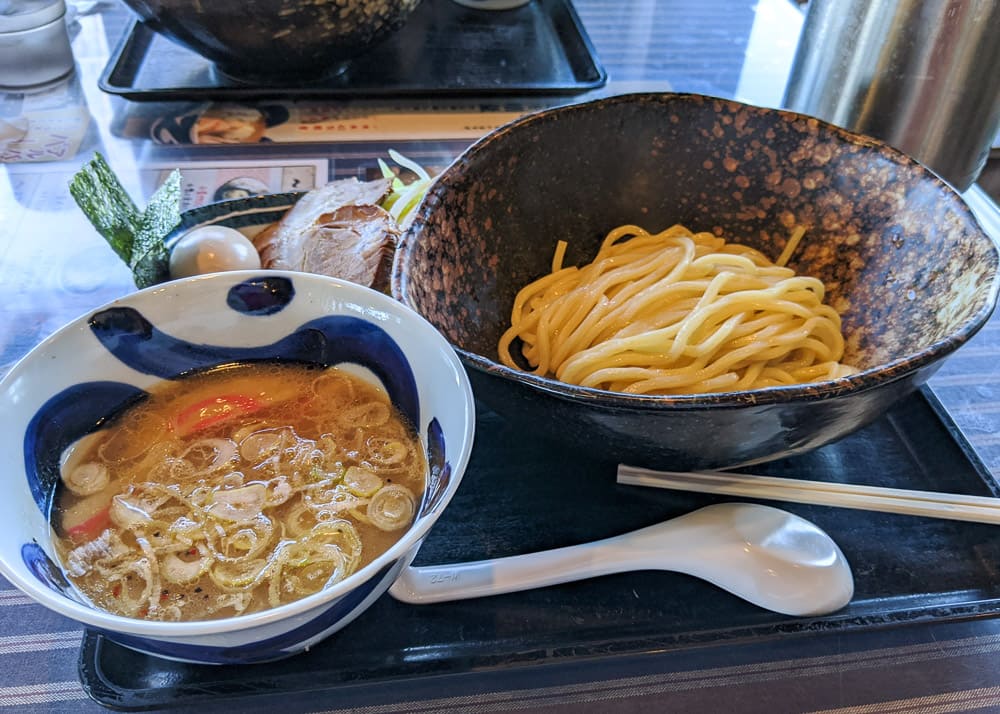 4,K Inhalt Was sind Tsukemen?Wo gibt es Tsukemen?[Rezept] TsukemenRezept Tsukemen – Step 1: Ajitsuke Tamago (2 Tage vorher)Rezept Tsukemen: Ramen-Nudeln selber machen!Rezept Tsukemen: die Brühe!Fazit: Lohnt sich das alles überhaupt?Michas Taste-imonialHier findet ihr die Beiträge von beteiligten Blogger:innen: Das Thema in dieser Woche bei den Oishii-Weeks ist Nudeln! Daher habe ich entschieden, endlich mal daheim ein Rezept für Tsukemen auszuprobieren! Was sind Tsukemen?Wo gibt es Tsukemen? [Rezept] TsukemenRezept Tsukemen – Step 1: Ajitsuke Tamago (2 Tage vorher)Rezept Tsukemen: Ramen-Nudeln selber machen!Zutaten für Ramen-Nudeln (2 Portionen):Zubereitung Ramen-Nudeln:Rezept Tsukemen: die Brühe!Fazit: Lohnt sich das alles überhaupt?Michas Taste-imonialHier findet ihr die Beiträge von beteiligten Blogger:innen: In dieser Woche ist das Thema unserer Blogger-Challenge der #OishiiWeeks „Nudeln“ und in Japan macht das alleine schon eine ziemlich große Welt auf – Ramen, Soba, Udon und überhaupt: es gibt so viele Möglichkeiten für Rezepte. Da es aber auch immer noch eine kleine Herausforderung sein soll, hab ich mich entschieden, mich endlich an eines meiner liebsten Gerichte aus Japan zu trauen: Tsukemen! (Eine Udon-Suppe oder Yakisoba findet ihr nämlich bereits im Blog.) Was sind Tsukemen? Doch fangen wir einmal damit an, was Tsukemen eigentlich sind. Tsukemen sind eine Art Ramen, nur mit dem Unterschied, dass ihr die Nudeln, Suppe und Toppings nicht gemeinsam in einer Suppenschüssel erhaltet, sondern jeweils auf eigenem Geschirr. Von den Wortbestandteilen ist das Gericht auch schnell und einfach beschrieben: つけ = gelesen „tsuke“. Bedeutet: eintunken.めん, manchmal auch 麺 = gelesen „men“, verkürzte Form von 麺類 („menrui“). Bedeutet: Nudeln. Ganz simpel also: Tsukemen ist ein Gericht, bei dem man Nudeln in eine Sauce eintunkt und dann isst. Normalerweise werden dafür Ramen-Nudeln genommen, oft sind diese aber ein weniger breiter oder dicker, um mehr Fläche für die Sauce zu bieten. Manchmal gibt es Variationen mit Udon. Wo gibt es Tsukemen? Im Grunde haben die meisten Ramen-Restaurants auch Tsukemen auf dem Menü. Es gibt aber auch Restaurants, die ausschließlich verschiedene Variationen an Tsukemen anbieten und sich nur auf dieses eine Gericht spezialisiert haben. In guten Restaurants könnt ihr auch verschiedene Optionen auswählen, wie ihr eure Tsukemen essen wollt. Dazu gehören: Wie groß ist euer Hunger? Ihr könnt die Menge an Nudeln bestimmen. Es gibt meist die Optionen Klein – Normal – GroßWie wollt ihr eure Nudeln? Kalt oder Lauwarm? Welche Garstufe sollen eure Nudeln haben?Welche Beilagen wollt ihr? In den meisten Restaurants bekommt man bereits fertige Menüs, aber manchmal kann man sich diese auch selbst zusammenstellen kann. Zu den gängigsten Beilagen gehören: eingelegte Eier (Ajitamago), Bambussprossen (Menma), Scheiben von Bratenfleisch (Chashu) oder Algen (Nori) Die Brühe zum Eintunken der Nudeln ist extrem heiß. Ihr nehmt euch immer ein bisschen von euren Nudeln auf eure Stäbchen, tunkt diese einmal in die Brühe und dann schlürft ihr sie. Achtet darauf eure Nudeln dann mit den Stäbchen auch etwas festzuhalten, weil die Brühe sonst einfach überall hinspritzt. Wenn ihr im Umgang mit Stäbchen noch unsicher seid: in vielen Ramen-Restaurants bekommt ihr auch Papier-Lätzchen, die eure Kleidung schützen. Die Brühe ist viel salziger als eine normale Ramen-Brühe und ist nicht zum Trinken gedacht! Wenn ihr nach euren Nudeln noch hungrig seid, dann könnt ihr „スープ割り“ (gelesen: Soup Wari) bestellen und ihr eure Brühe wird mit heißem Wasser oder einer leichten Brühe aufgefüllt, damit ihr die auch trinken könnt. Wem dann aber immer noch der Bauch knurrt: ihr könnt stattdessen auch Reis bestellen, den ihr in die Brühe gebt und der dann quasi wie eine Art Risotto schmeckt. [Rezept] Tsukemen Wir wurden schon öfters gefragt, warum es hier auf dem Blog eigentlich kein Ramen-Rezept gibt und ich muss ehrlich sein: ich bin zu faul. Denn meine liebste Art von Ramen sind Tonkotsu, mit einer dicken und cremigen Brühe, die aus Schweineknochen ausgekocht wird. Das macht man (ich!) jetzt eher nicht nebenbei daheim. Und dann hab ich das Problem, dass ich sehr anspruchsvoll bei den Nudeln der Ramen bin und mich die verschiedenen Instant oder Tiefkühlprodukte bei Ramen-Nudeln durch die Bank nicht glücklich gemacht haben. Daher ist mein Plan: Nudeln selber machen. Und überhaupt: dieser Blog-Artikel ist die reinste Versuchsküche, da ich hier viele Dinge zum ersten Mal mache. Tipps nehme ich also gerne in den Kommentaren entgegen. 😉 Rezept Tsukemen – Step 1: Ajitsuke Tamago (2 Tage vorher) Mein absolutes Lieblings-Topping für Ramen und Tsukemen: eingelegte Eier! An Zutaten benötigt ihr Eier sowie Sojasauce, Mirin und Koch-Sake. Ich bin leider selber keiner Eier-Koch-und-Einleg-Profi, daher empfehle ich euch dieses Video, weil es da einfach wunderbar erklärt wird: Sie sehen gerade einen Platzhalterinhalt von YouTube. Um auf den eigentlichen Inhalt zuzugreifen, klicken Sie auf die Schaltfläche unten. Bitte beachten Sie, dass dabei Daten an Drittanbieter weitergegeben werden. Mehr Informationen Inhalt entsperren Erforderlichen Service akzeptieren und Inhalte entsperren Am Ende fand ich jetzt, dass die Eier zu sehr nach Alkohol geschmeckt haben, aber ich den Mirin und Sake auch nicht entflammt, weil ich davor etwas Respekt hatte. Hätte ich vielleicht mal doch tun sollen. Rezept Tsukemen: Ramen-Nudeln selber machen! Ich hab ja schon erwähnt, dass ich nicht so der Instant-Nudel-Fan bin, daher war das hier etwas, was ich zwar schon lange auf der „Solltest du echt mal ausprobieren“-Liste stehen hatte. Das benötigte Kansui hatte ich mir schon vor langer Zeit besorgt, aber endlich konnte ich die Flasche mal öffnen. Ich hab zusätzlich noch etwas frisch gemahlenen Pfeffer in den Teig gegeben, weil das in 