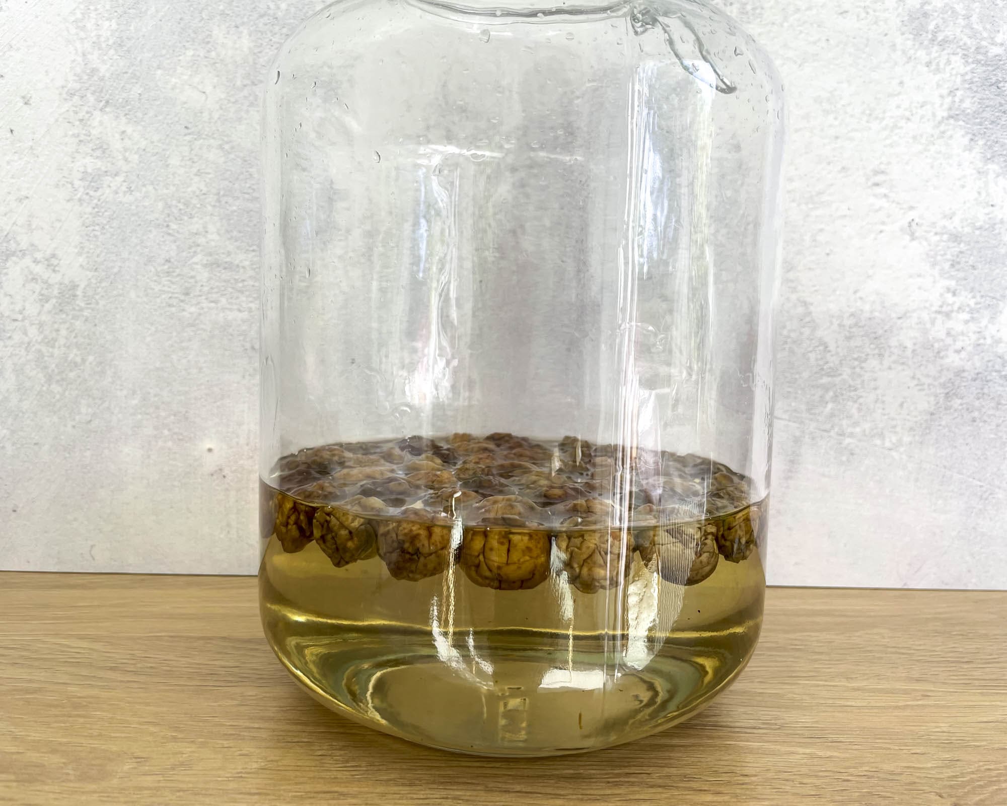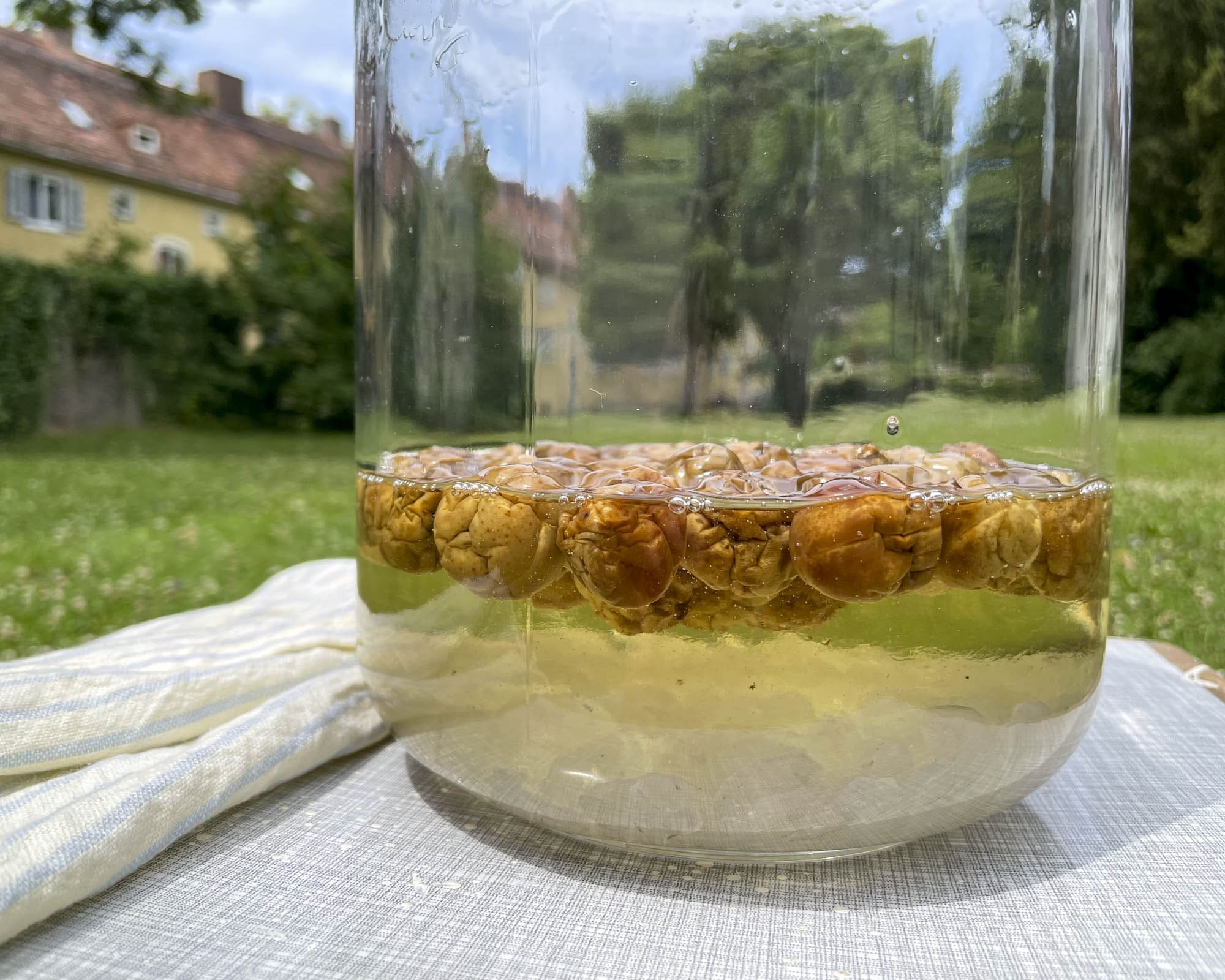 2,4K Inhalt Ume: Was ist das eigentlich?Rezept: Japanischer Ume-SirupNotizenWas macht man mit Ume-Sirup?Kleiner Exkurs: Gläser sterilisieren für Ume-Sirup In diesem Jahr habe ich viel mit Einlegen und Fermentieren experimentiert. Dabei herausgekommen ist auch ein Rezept für einen erfrischenden Ume-Sirup, das hier mit euch teile. Direkt zum Rezept Wenn ich in Japan Alkohol trinke, dann greife ich bevorzugt zu Umeshu. Dies ist ein süßer Likör. der aus der japanischen Pflaume (Ume) hergestellt wird. Der Prozess dafür ist etwas aufwendiger, aber ich kann euch jetzt schon verraten, dass mein selbst angesetzter Umeshu bereits seit April 2022 im Keller reift und dann im Frühjahr 2023 fertig sein wird. Und weil ich noch Pflaumen über hatte, habe ich noch Ume-Sirup selbst gemacht in diesem Jahr. Das gute daran? Der ist bereits nach 3 Monaten fertig! Aus diesem Rezept habe ich 5 kleine 250 ml Flaschen herausbekommen. Ume: Was ist das eigentlich? Die japanische Pflaume (botanisch: prunus mume) ist eine Steinfrucht und gehört damit zur selben Gattung wie Kirschen, ist aber wohl am Ende etwas näher an Aprikosen als an unseren Pflaumen. Ich habe Anfang des Jahres mich ein bisschen mit japanischen Expats in Deutschlands ausgetauscht. Als beste Alternative wurden immer wieder grüne Kirschpflaumen genannt. Can Erik. Die bekommt ihr im April-Mai in türkischen Supermärkten. Rezept: Japanischer Ume-Sirup In diesem Jahr habe ich viel mit Einlegen und Fermentieren experimentiert. Dabei herausgekommen ist auch ein Rezept für einen erfrischenden Ume-Sirup, das hier mit euch teile. Noch keine Bewertungen Rezept drucken Auf Pinterest teilen Vorbereitung 30 Minuten Min.Zubereitung 15 Minuten Min.Aging 90 Tage dGesamtzeit 90 Tage d 45 Minuten Min. Gericht Getränke, KleinigkeitLand & Region Japanisch Portionen 4 Flaschen à 250 ml Kochutensilien▢ 1 Glasgefäß für etwa 3 Liter mit Deckel▢ 25 ml Vodka (oder anderen hochprozentigen Alkohol über 35%) Zum Desinfizieren▢ 5 Glasflaschen à 250ml zum Abfüllen* Zutaten 1x2x3x▢ 1 kg Ume Can Erik, türkische unreife Pflaumen▢ 1 kg großer Friesen-Kandis z. B. Kluntje▢ 125 ml Apfel-Essig Anleitungen Die lästige Arbeit zuerst: Die Pflaumen müssen in einer Schale mit Wasser gewaschen und dann abgetrocknet werden. Mit einem Zahnstocher pickt ihr die Reste vom Stielansatz heraus. Passt auf, dass ihr nicht zu weit in die Frucht stecht.1 kg Ume So soll es dann aussehen. Dann desinfiziert ihr euren Glasbehälter mit dem Vodka. Dieser kann danach weggeschüttet werden. Gebt geschichtet den Kluntje-Kandis und die Pflaumen ins Glas. Danach mit Apfel-Essig übergießen.1 kg großer Friesen-Kandis, 125 ml Apfel-Essig Dann kommt die Phase, in der ihr geduldig sein müsst: Glasbehälter an einem kühlen Ort, ohne direkte Sonneneinstrahlung hinstellen und regelmäßig das Glas schwenken. Nach und nach entsteht Flüssigkeit und irgendwann ist der Zucker aufgelöst. Bei mir hat es etwa 3 Monate gedauert. Dann die Ume entfernen und den Sirup auffangen. Ich habe einen Teil des Sirups noch einmal aufgekocht und dann in saubere Flaschen gefüllt, damit es länger haltbar ist. Den anderen Teil habe ich so in die Flaschen gefüllt. Den Sirup mit einem Trichter in die Gläser füllen. NotizenDer Sirup ist etwa 1 Jahr haltbar. Hast du unser Rezept ausprobiert?Schreib uns einen Kommentar, wie es geklappt hat!Mehr Rezepte findet ihr in unserer Rezepte-Datenbank. * Dieser Link führt auf Amazon. Wir nehmen am Amazon-Partner-Programm teil. Dies bedeutet, wir erhalten für über diesen Link gekaufte Produkte eine Provision. Ume-Sirup nach 1,5 Monaten. Es sind noch einige Kandis-Blöcke zu erkennen. Ume-Sirup nach fast 3 Monaten. Es hat sich alles vollständig aufgelöst. Was macht man mit Ume-Sirup? Ich liebe den Sirup in kaltem Wasser mit und ohne Sprudel. Dazu noch ein paar Eiswürfel, ein paar Minzblätter und ich bin zufrieden. Habe dieses Getränk diesen Sommer schon an so manchen Abenden auf dem Balkon genossen und bin froh, dass ich noch ein paar Gläschen Reserven habe für den Herbst und Winter. Den Sommer am Balkon genießen mit einem Glas kalter Ume-Limo. Kleiner Exkurs: Gläser sterilisieren für Ume-Sirup Der Apfel Essig im Sirup sorgt dafür, dass der Sirup nicht so schnell schlecht wird, gerade über die Aging-Periode ist dieser ein wichtiger Bestandteil. Damit ihr aber auch darüber hinaus euren Sirup genießen könnt, empfehle ich, ihn in kleineren Portionen abzufüllen. Ich habe mich für 250 ml Saftflaschen entschieden. Wichtig ist, dass die Gläser komplett heile sind: Streiche mit dem Finger am oberen Rand entlang. Es sollte alles glatt sein, keine Dellen oder Beulen. Beschädigte Gläser aussortieren, da sich sonst der Deckel nicht sicher verschließen lässt. Gläser im Backofen für 15 Minuten bei 130°C sterilisieren. Die Deckel im Essig-Wasser aufkochen. Gläser erst heiß ausspülen und dann für 15 Minuten bei 130°C in den Backofen. Achte darauf, dass sich die Gläser nicht berühren. Die Deckel (und eventuelle Gummis) gibst du in einen Kochtopf mit Wasser und einen Spritzer Essig, etwa 5 Minuten köcheln lassen. Heißes Einmachgut auch in heiße Gläser füllen. Dabei idealerweise einen Trichter verwenden und die Ränder nach dem Einfüllen sauber wischen. Beim Abkühlen bildet sich dann ein Vakuum. FoodJapanJapanische KücheRezepte Stephanie Drewing Stephanie wird eigentlich von allen Kumo gerufen. Sie mag alles was niedlich ist und hat einige Zeit in Tokyo gelebt. Nach Japan reist sie eigentlich jedes Jahr. Als echter Foodie gehört Kochen, backen, Restaurants testen und der Austausch dazu, zu ihren liebsten Hobbys. vorheriger Eintrag Folge 27: Beste Reisezeit für Japan Nächster Eintrag Einreise nach Japan wieder möglich: Keine Visa-Pflicht oder Obergrenzen mehr Weiterlesen Folge 22: Kyushu erleben [Tokyo] Namco Namja Town mit Gyoza Stadium Radieschen einlegen nach japanischer Art Kommentar schreiben Antwort löschen Wie fandest du unser R