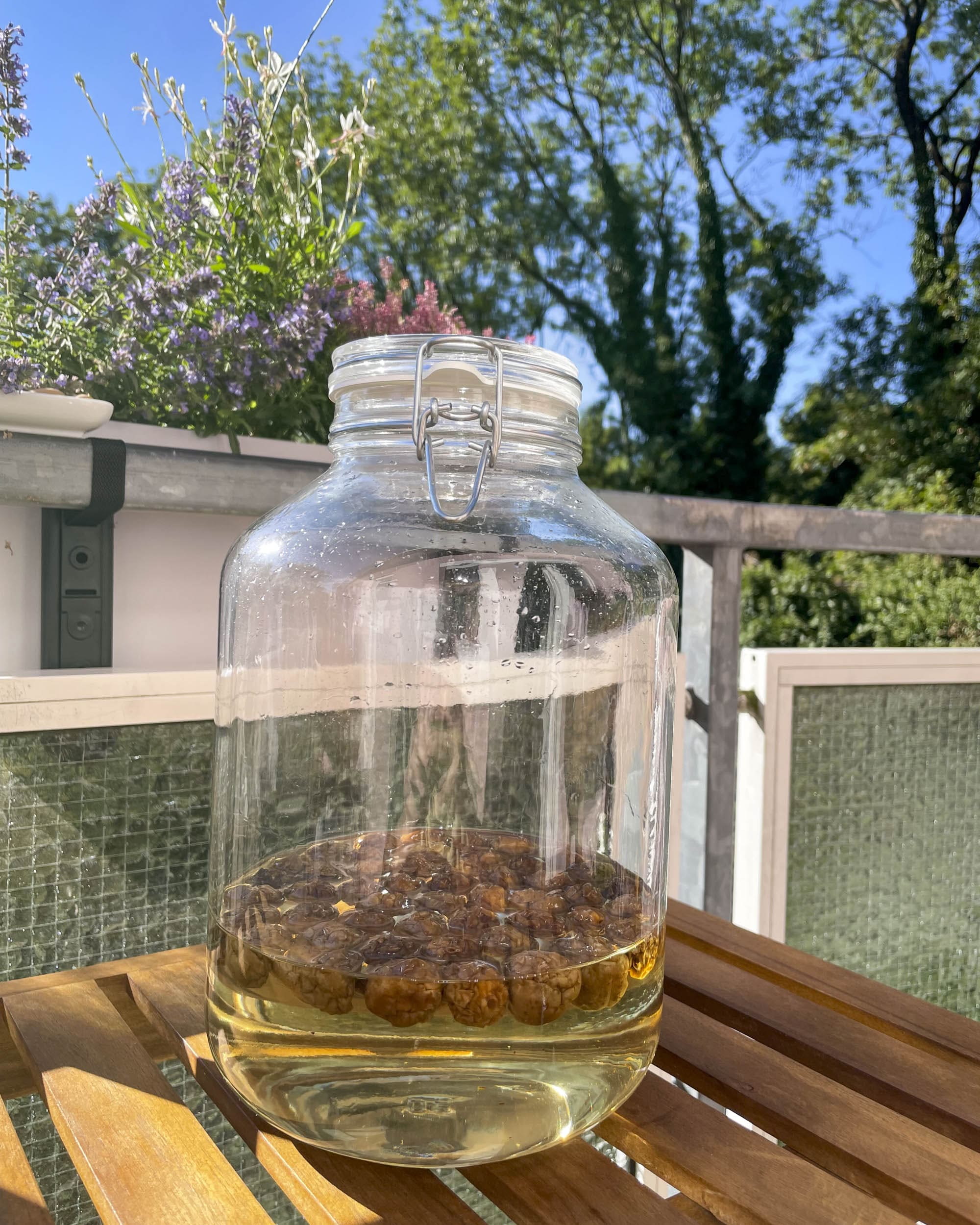 2,3K Inhalt Ume: Was ist das eigentlich?Rezept: Japanischer Ume-SirupNotizenWas macht man mit Ume-Sirup?Kleiner Exkurs: Gläser sterilisieren für Ume-Sirup In diesem Jahr habe ich viel mit Einlegen und Fermentieren experimentiert. Dabei herausgekommen ist auch ein Rezept für einen erfrischenden Ume-Sirup, das hier mit euch teile. Direkt zum Rezept Wenn ich in Japan Alkohol trinke, dann greife ich bevorzugt zu Umeshu. Dies ist ein süßer Likör. der aus der japanischen Pflaume (Ume) hergestellt wird. Der Prozess dafür ist etwas aufwendiger, aber ich kann euch jetzt schon verraten, dass mein selbst angesetzter Umeshu bereits seit April 2022 im Keller reift und dann im Frühjahr 2023 fertig sein wird. Und weil ich noch Pflaumen über hatte, habe ich noch Ume-Sirup selbst gemacht in diesem Jahr. Das gute daran? Der ist bereits nach 3 Monaten fertig! Aus diesem Rezept habe ich 5 kleine 250 ml Flaschen herausbekommen. Ume: Was ist das eigentlich? Die japanische Pflaume (botanisch: prunus mume) ist eine Steinfrucht und gehört damit zur selben Gattung wie Kirschen, ist aber wohl am Ende etwas näher an Aprikosen als an unseren Pflaumen. Ich habe Anfang des Jahres mich ein bisschen mit japanischen Expats in Deutschlands ausgetauscht. Als beste Alternative wurden immer wieder grüne Kirschpflaumen genannt. Can Erik. Die bekommt ihr im April-Mai in türkischen Supermärkten. Rezept: Japanischer Ume-Sirup In diesem Jahr habe ich viel mit Einlegen und Fermentieren experimentiert. Dabei herausgekommen ist auch ein Rezept für einen erfrischenden Ume-Sirup, das hier mit euch teile. Noch keine Bewertungen Rezept drucken Auf Pinterest teilen Vorbereitung 30 Minuten Min.Zubereitung 15 Minuten Min.Aging 90 Tage dGesamtzeit 90 Tage d 45 Minuten Min. Gericht Getränke, KleinigkeitLand & Region Japanisch Portionen 4 Flaschen à 250 ml Kochutensilien▢ 1 Glasgefäß für etwa 3 Liter mit Deckel▢ 25 ml Vodka (oder anderen hochprozentigen Alkohol über 35%) Zum Desinfizieren▢ 5 Glasflaschen à 250ml zum Abfüllen* Zutaten 1x2x3x▢ 1 kg Ume Can Erik, türkische unreife Pflaumen▢ 1 kg großer Friesen-Kandis z. B. Kluntje▢ 125 ml Apfel-Essig Anleitungen Die lästige Arbeit zuerst: Die Pflaumen müssen in einer Schale mit Wasser gewaschen und dann abgetrocknet werden. Mit einem Zahnstocher pickt ihr die Reste vom Stielansatz heraus. Passt auf, dass ihr nicht zu weit in die Frucht stecht.1 kg Ume So soll es dann aussehen. Dann desinfiziert ihr euren Glasbehälter mit dem Vodka. Dieser kann danach weggeschüttet werden. Gebt geschichtet den Kluntje-Kandis und die Pflaumen ins Glas. Danach mit Apfel-Essig übergießen.1 kg großer Friesen-Kandis, 125 ml Apfel-Essig Dann kommt die Phase, in der ihr geduldig sein müsst: Glasbehälter an einem kühlen Ort, ohne direkte Sonneneinstrahlung hinstellen und regelmäßig das Glas schwenken. Nach und nach entsteht Flüssigkeit und irgendwann ist der Zucker aufgelöst. Bei mir hat es etwa 3 Monate gedauert. Dann die Ume entfernen und den Sirup auffangen. Ich habe einen Teil des Sirups noch einmal aufgekocht und dann in saubere Flaschen gefüllt, damit es länger haltbar ist. Den anderen Teil habe ich so in die Flaschen gefüllt. Den Sirup mit einem Trichter in die Gläser füllen. NotizenDer Sirup ist etwa 1 Jahr haltbar. Hast du unser Rezept ausprobiert?Schreib uns einen Kommentar, wie es geklappt hat!Mehr Rezepte findet ihr in unserer Rezepte-Datenbank. * Dieser Link führt auf Amazon. Wir nehmen am Amazon-Partner-Programm teil. Dies bedeutet, wir erhalten für über diesen Link gekaufte Produkte eine Provision. Ume-Sirup nach 1,5 Monaten. Es sind noch einige Kandis-Blöcke zu erkennen. Ume-Sirup nach fast 3 Monaten. Es hat sich alles vollständig aufgelöst. Was macht man mit Ume-Sirup? Ich liebe den Sirup in kaltem Wasser mit und ohne Sprudel. Dazu noch ein paar Eiswürfel, ein paar Minzblätter und ich bin zufrieden. Habe dieses Getränk diesen Sommer schon an so manchen Abenden auf dem Balkon genossen und bin froh, dass ich noch ein paar Gläschen Reserven habe für den Herbst und Winter. Den Sommer am Balkon genießen mit einem Glas kalter Ume-Limo. Kleiner Exkurs: Gläser sterilisieren für Ume-Sirup Der Apfel Essig im Sirup sorgt dafür, dass der Sirup nicht so schnell schlecht wird, gerade über die Aging-Periode ist dieser ein wichtiger Bestandteil. Damit ihr aber auch darüber hinaus euren Sirup genießen könnt, empfehle ich, ihn in kleineren Portionen abzufüllen. Ich habe mich für 250 ml Saftflaschen entschieden. Wichtig ist, dass die Gläser komplett heile sind: Streiche mit dem Finger am oberen Rand entlang. Es sollte alles glatt sein, keine Dellen oder Beulen. Beschädigte Gläser aussortieren, da sich sonst der Deckel nicht sicher verschließen lässt. Gläser im Backofen für 15 Minuten bei 130°C sterilisieren. Die Deckel im Essig-Wasser aufkochen. Gläser erst heiß ausspülen und dann für 15 Minuten bei 130°C in den Backofen. Achte darauf, dass sich die Gläser nicht berühren. Die Deckel (und eventuelle Gummis) gibst du in einen Kochtopf mit Wasser und einen Spritzer Essig, etwa 5 Minuten köcheln lassen. Heißes Einmachgut auch in heiße Gläser füllen. Dabei idealerweise einen Trichter verwenden und die Ränder nach dem Einfüllen sauber wischen. Beim Abkühlen bildet sich dann ein Vakuum. FoodJapanJapanische KücheRezepte Stephanie Drewing Stephanie wird eigentlich von allen Kumo gerufen. Sie mag alles was niedlich ist und hat einige Zeit in Tokyo gelebt. Nach Japan reist sie eigentlich jedes Jahr. Als echter Foodie gehört Kochen, backen, Restaurants testen und der Austausch dazu, zu ihren liebsten Hobbys. vorheriger Eintrag Folge 27: Beste Reisezeit für Japan Nächster Eintrag Einreise nach Japan wieder möglich: Keine Visa-Pflicht oder Obergrenzen mehr Weiterlesen Vulkanausbruch live – Der Sakurajima in Kagoshima Sushi-Wissen für Angeber Kimchi selber machen: Einfaches Rezept Kommentar schreiben Antwort löschen Wie fandest du